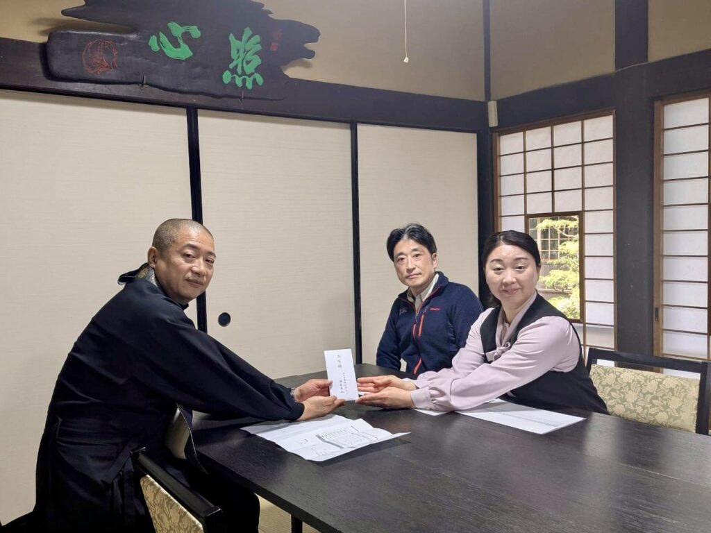 このたび、有限会社ひわだやとアロマ空間デザイン株式会社が共同開発・展開しております「瑠璃KOUアロマシリーズ」につきまして、日頃よりお取り扱いいただいている皆様のご協力のもと、令和7年9月および令和8年3月の2回に分けて、宗教法人瑠璃光寺様へ一年分の寄付として総額約20万円を納めさせていただきました。